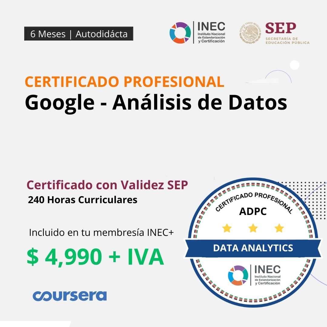• Prepárate para una nueva carrera en el campo de alto crecimiento del análisis de datos, sin necesidad de experiencia o título. Recibe formación profesional diseñada por Google y oportunidades de conexión con empleadores líderes.